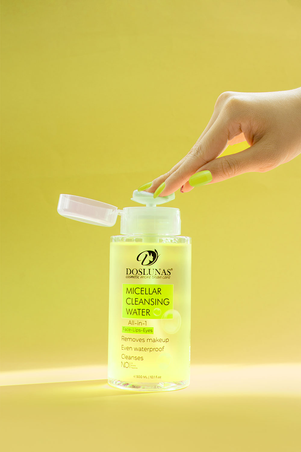 Put a little of it on a cotton and then put it on the face, eyes or lips Leave it for five seconds and then wipe it gently without the need to rub or wash with water
