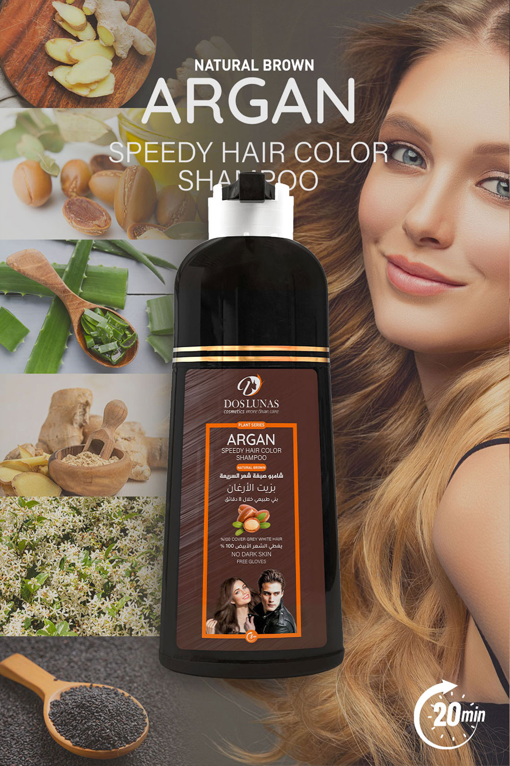 Complete Coverage Of White Hair With A Natural Brown Color Within 8 Minutes. Comfortable: Easy To Use, Just Like Regular Shampoo. Moisturizing And Volumizing . Rich In Argan Oil, For Soft And Strong Hair. Suitable For All Hair Types